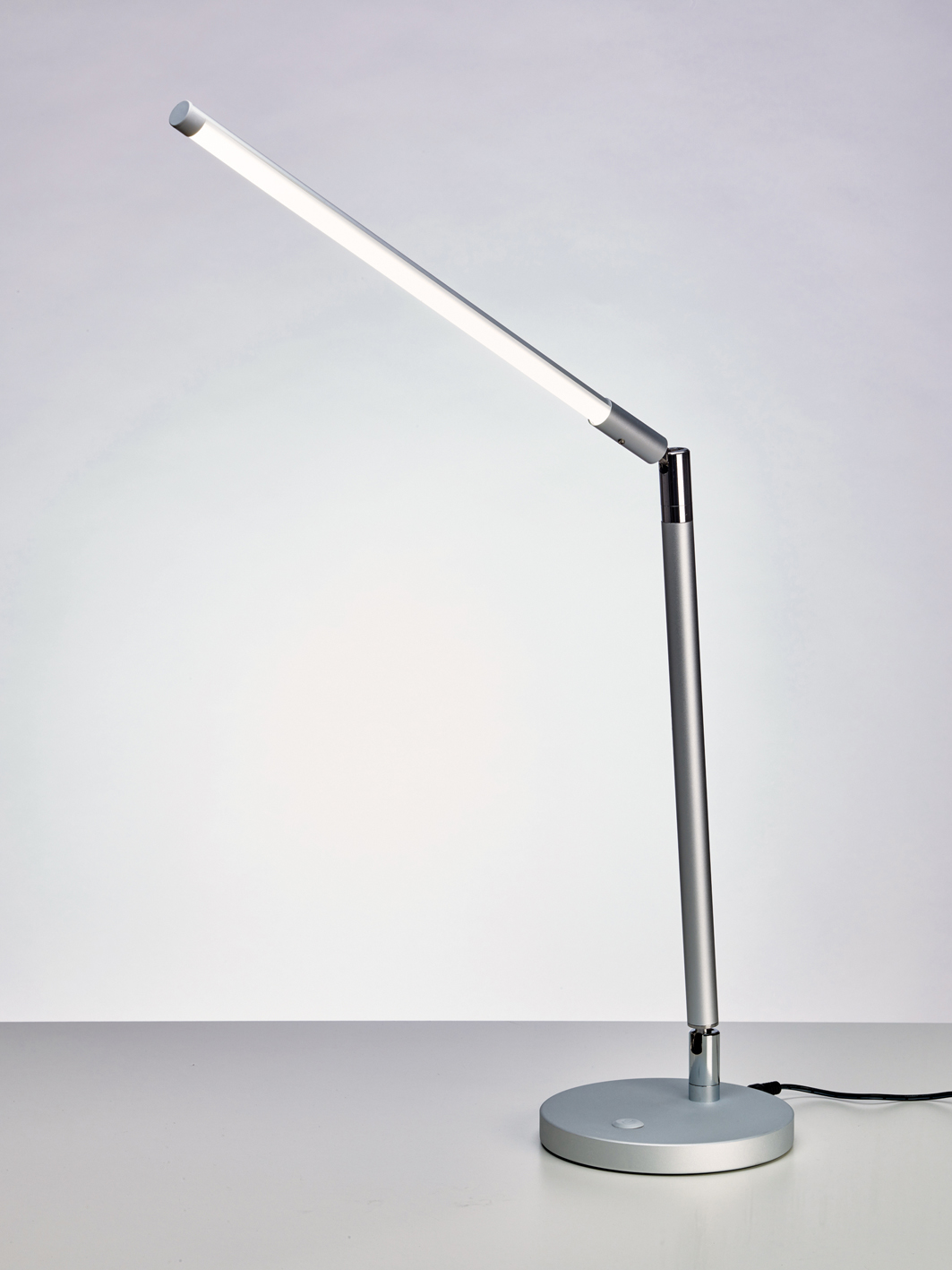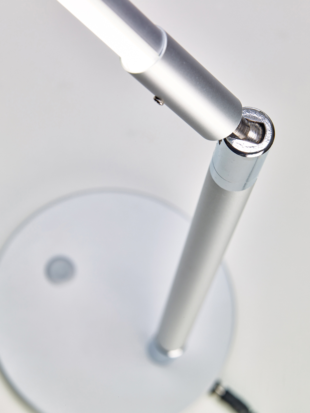 - Ergonomia: Płynnie regulowane ramię na przegubie pozwala